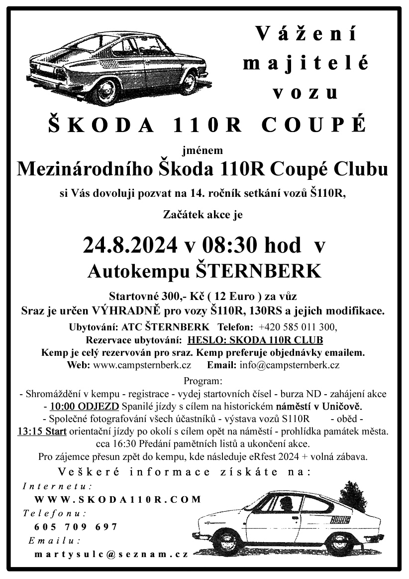 Pořádá: Mezinárodní Škoda 110R Coupé Club
