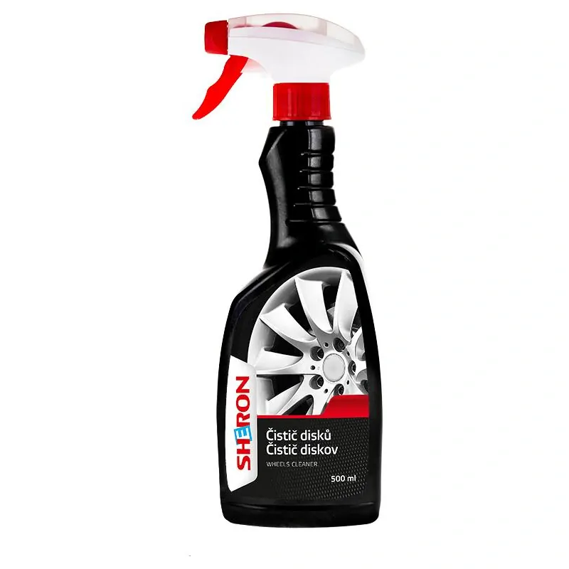 SHERON Čistič disků čistí disky slitinových i ocelových kol. Kromě běžných nečistot odstraňuje znečištění vznikající vlivem tření brzdového obložení, např. na prolisech poklic (tento prach nelze odstranit běžnými prostředky).